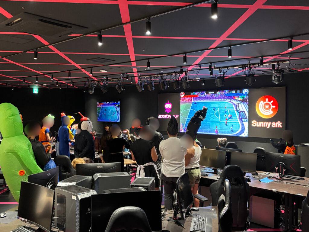 【社内eスポーツ交流会】開催終了-2025/10/21- / イベント報告 / By espofield 2025年10月21日に、当店eスポフィールドにて、企業様主催「社内eスポーツ交流イベント」が開催されました♪今回はハロウィンの時期ということもあり、参加された皆さまがそれぞれ仮装をして来場し、終始にぎやかな雰囲気に包まれていました。交流会では、お酒を楽しみながらゲームで対戦や観戦を行い、リラックスした空気の中で社員同士の交流が深まっていた様子が見られました。試合の映像は大型LEDモニターに映し出され、会場の各所から歓声が上がるなど、盛り上がりのあるイベントとなりました。お越しいただきました皆様、ご来場誠にありがとうございました!