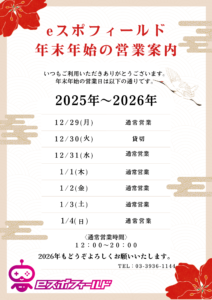 平素よりeスポフィールドをご利用いただきありがとうございます。 2025年3月の予定表になります。 【営業時間】 平日 11:00-22:00 土日祝 10:00-22:00 ※最終入店 21:00 ラストオーダー 21